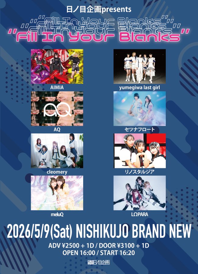 【大阪対バン】日ノ目企画presents“Fill In Your Blanks”